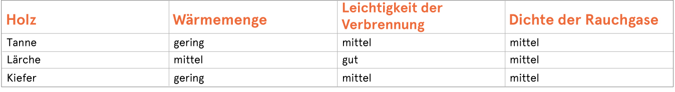 • Schnelles Anzünden: Kiefer, Tanne, Birke.