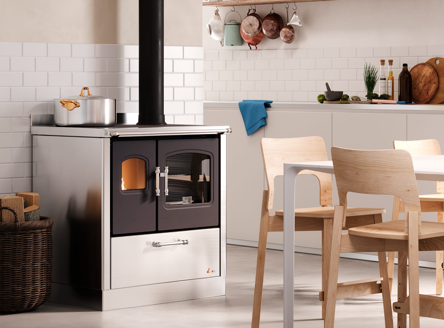 Les cuisinières à bois Cadel, pouvant être installées librement et pouvant être encastrées, sont en conformité avec les normes environnementales les plus strictes. Elles offrent un chauffage domestique et une polyvalence d'installation, sans négliger le côté esthétique du produit.