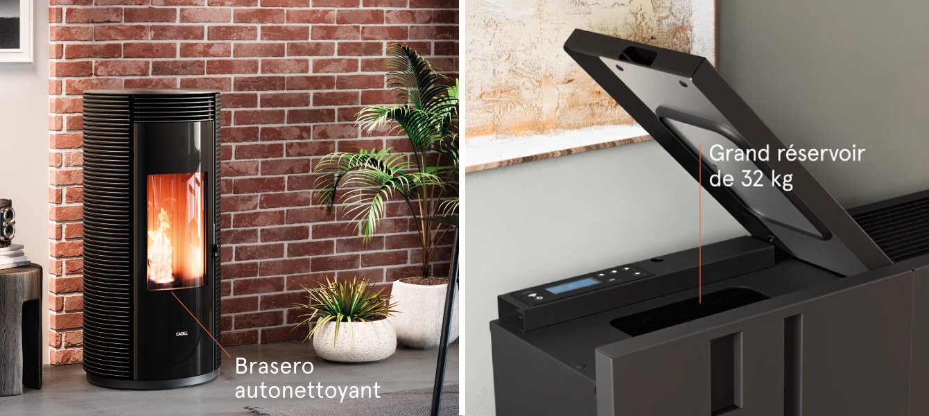 Voyons deux fonctions concrètes qui rendent les poêles Cadel encore plus pratiques : la brasier autonettoyant des poêles River 18, Spin Plus 9 et Cristal 9  et le réservoir maxi de 32 kg du nouveau poêle à granulés Baggy 7.